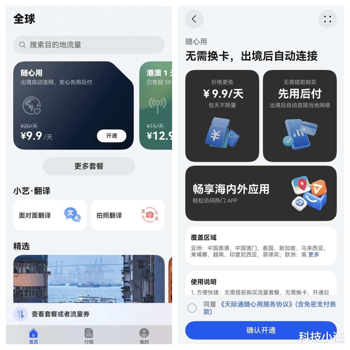 而且这个“随心用”是按天付费,先用后付,9.9元包天,不用不扣费。关键是覆盖面广,已覆盖全球主流出行目的地,包括中国香港、中国澳门、欧美、东南亚等50余个热门国家和地区。特别针对多国联程旅行需求,提供多目的地流量套餐,只需购买一次,真正实现"一APP走全球"的无缝体验。一次开通,次次便捷。网速非常稳定,体验和在国内一样流畅。