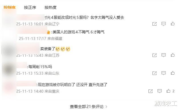 每次官方发布公告就少不了玩家的阴阳怪气,其中玩家说的最多的一个点就是削弱,有玩家直言说每周削15%吗?确实WLK怀旧服的过度削弱让不少玩家耿耿于怀,毕竟自从团本削弱开始,排骨人或者是金团收入断崖式下降,所以很多人并不喜欢团本削弱。但是削弱的同时却又让更多玩家回归,也劝退了精英玩家,所以这是一把双刃剑。还有一些玩家调侃说还没有开服就先卖礼包了。