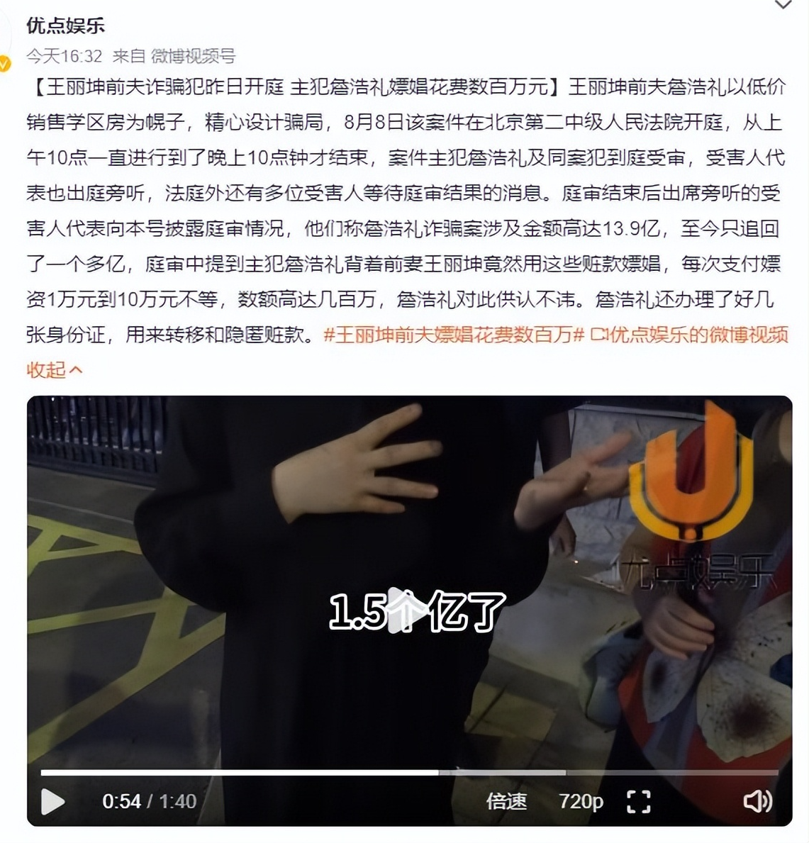 王丽坤作为詹浩礼的前妻,客观上跟这个案子脱不开关系。