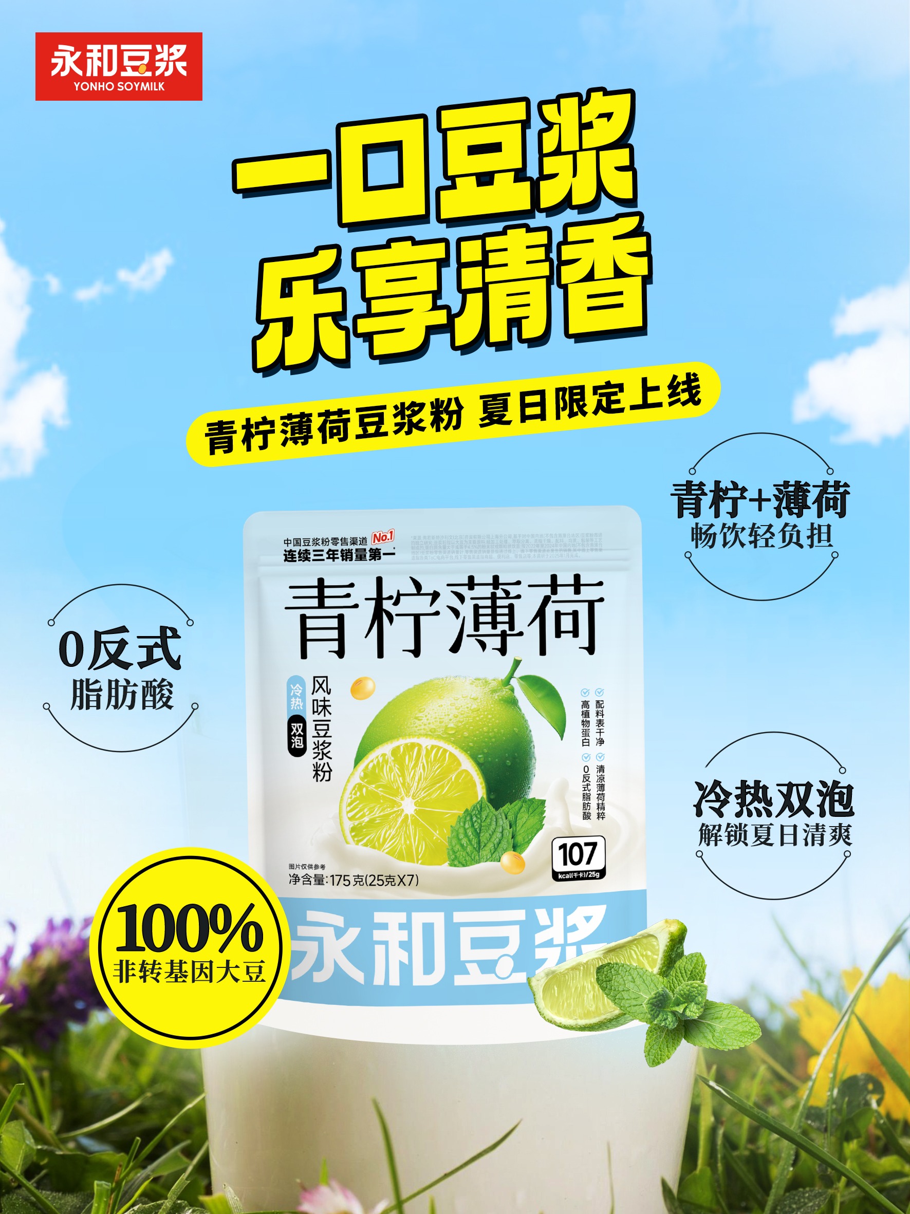 信息透明时代,消费者对“配料表”的审视愈发严格,围绕着“纯净配方”和“原料健康”这两点,永和豆浆交出了高分答卷。新品青柠薄荷豆浆继续以清爽【0添加】配方,树立健康饮品新形象,有力回应消费者的期待。配方拒绝非必要添加,青柠的酸甜与薄荷的清凉均源自天然原料精粹,无人工合成香精、色素、防腐剂。配料表干净简洁,结合永和豆浆先进优良的生产工艺,让消费者畅享清凉的同时,告别反式脂肪酸可能带来的健康隐患,真正做到“健康好喝,畅饮无负担”。