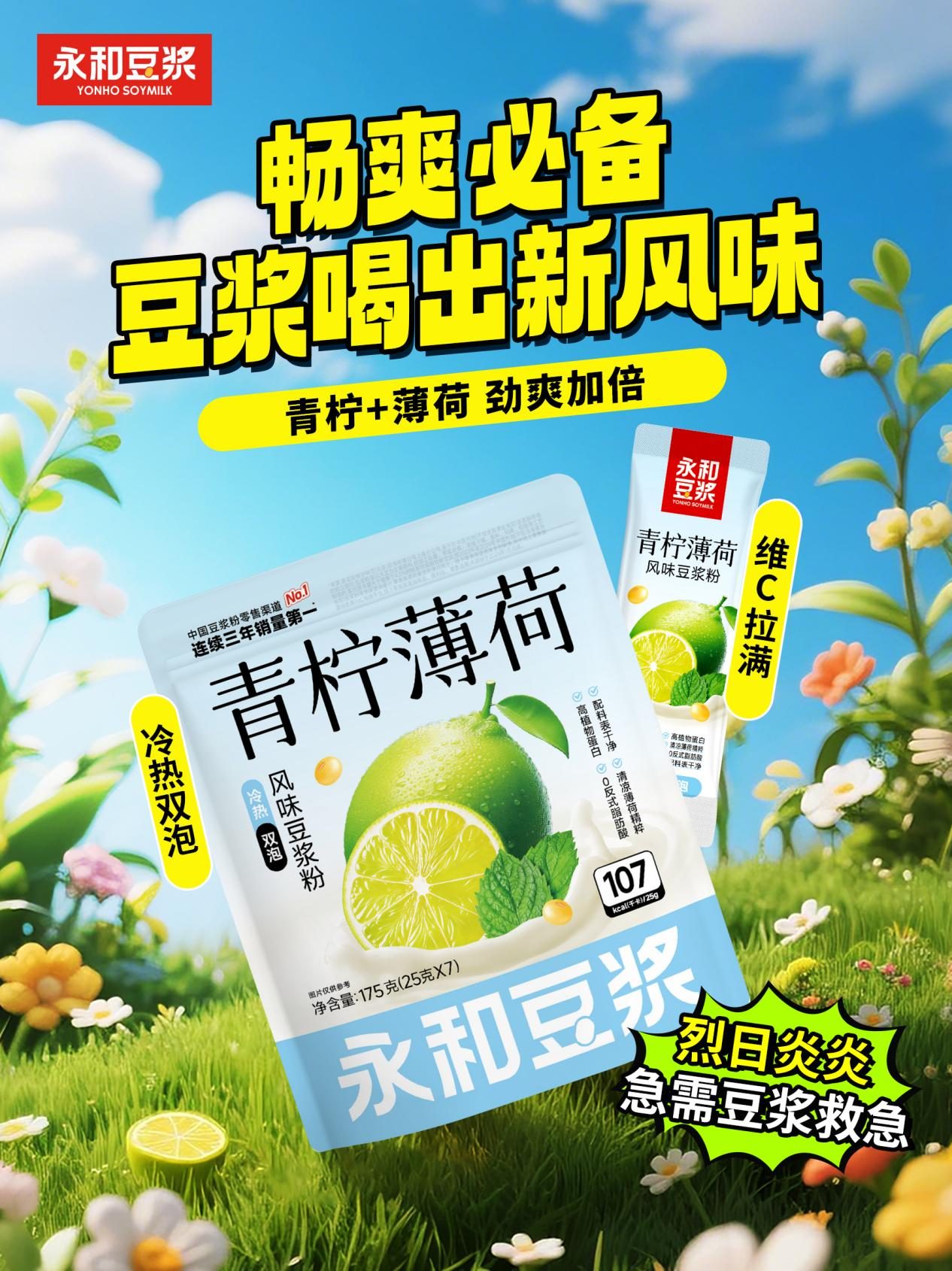 社媒平台搜索“夏日解暑饮品”,柠檬和薄荷在其中存在感尤为突出,但对于如今的消费者而言,仅仅满足口感上的一时畅爽还不够,健康属性越来越受到人们的重视。既要瞬间解渴的冰爽清凉,又要无负担的健康承诺,还要满足挑剔味蕾的惊喜体验——面对消费者越来越明确的饮品需求,国民豆饮品牌永和豆浆凭借深厚的植物基研发底蕴,在健康与口感之间找到了平衡,强势推出颠覆性夏日新品——青柠薄荷豆浆。
