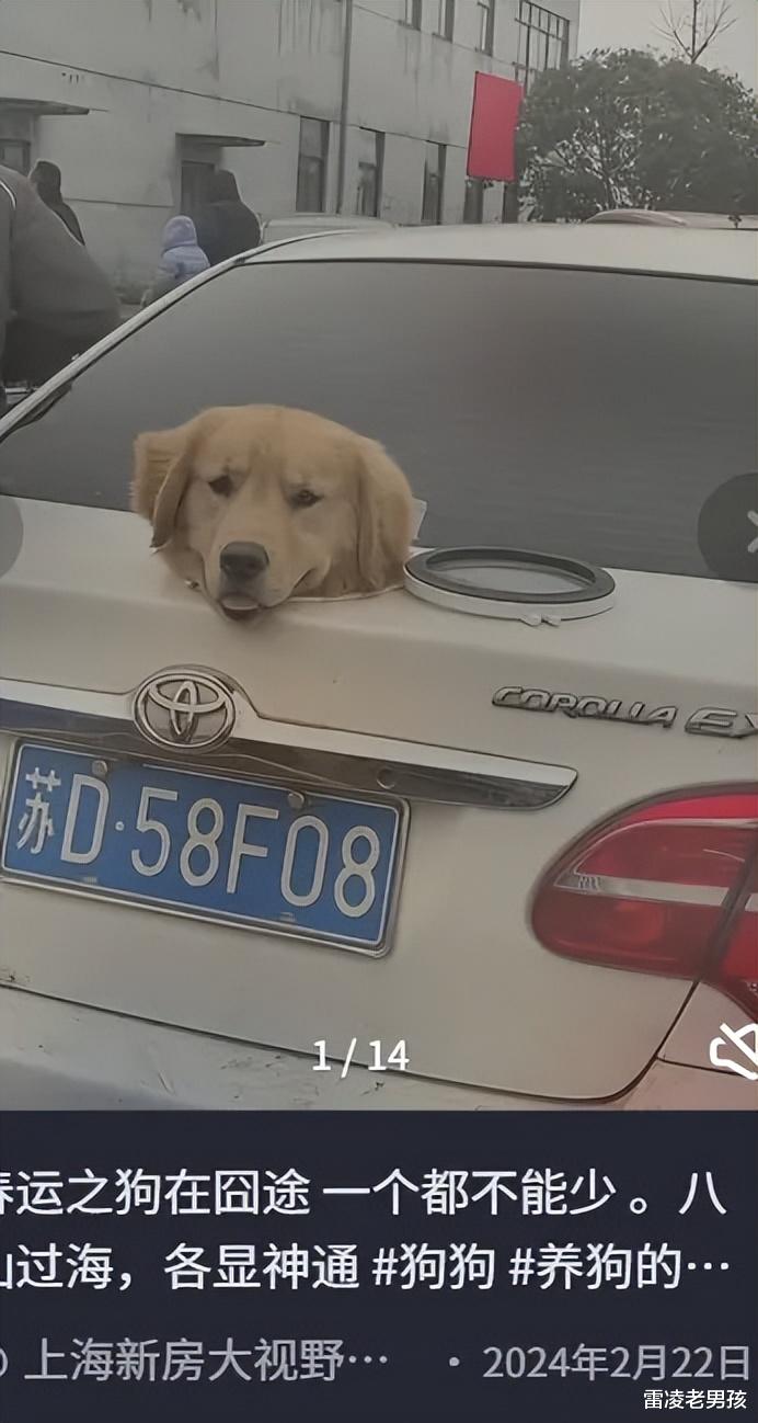 还有的私家车,编织袋往后备箱缝里一夹,狗子像挂件一样悬在半空,评论区网友笑称这狗子买的是“挂票”。