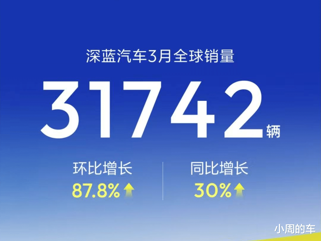 3月深蓝汽车销量31742辆,环比增长87.8%,同比增长30%。其中深蓝L06单月销量5135辆,环比增长170%;深蓝S05单月销量17586辆。