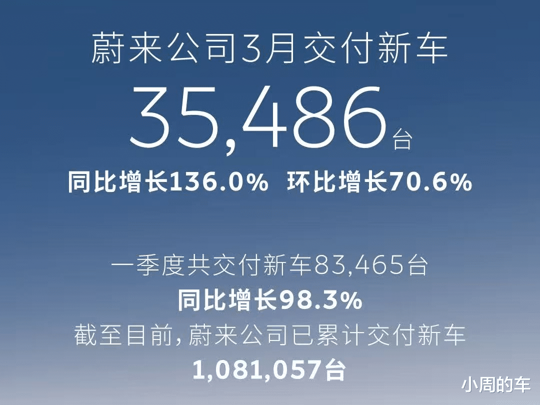 3月份蔚来公司交付新车35486辆,同比增长136%,环比增长70.6%,一季度累计交付新车83465辆,同比增长98.3%,整体势头保持的不错,并没有受到比亚迪闪充技术太大的影响。