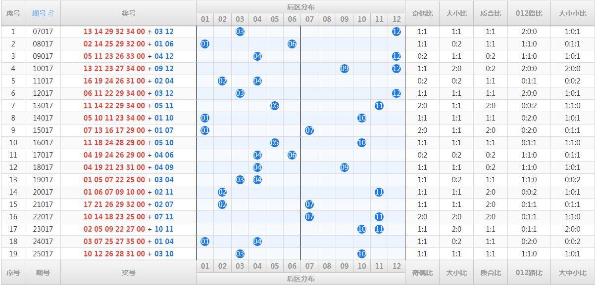 七、历史同期,后区开奖结果和走势图(历史数据演示):