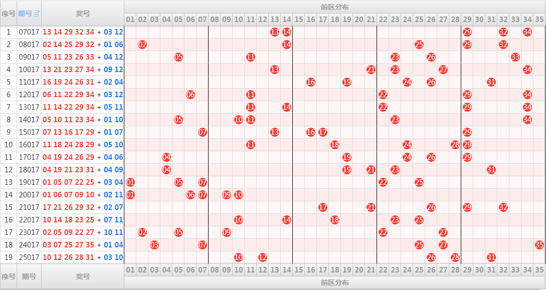 六、历史同期,前区开奖结果和走势图(历史数据演示):