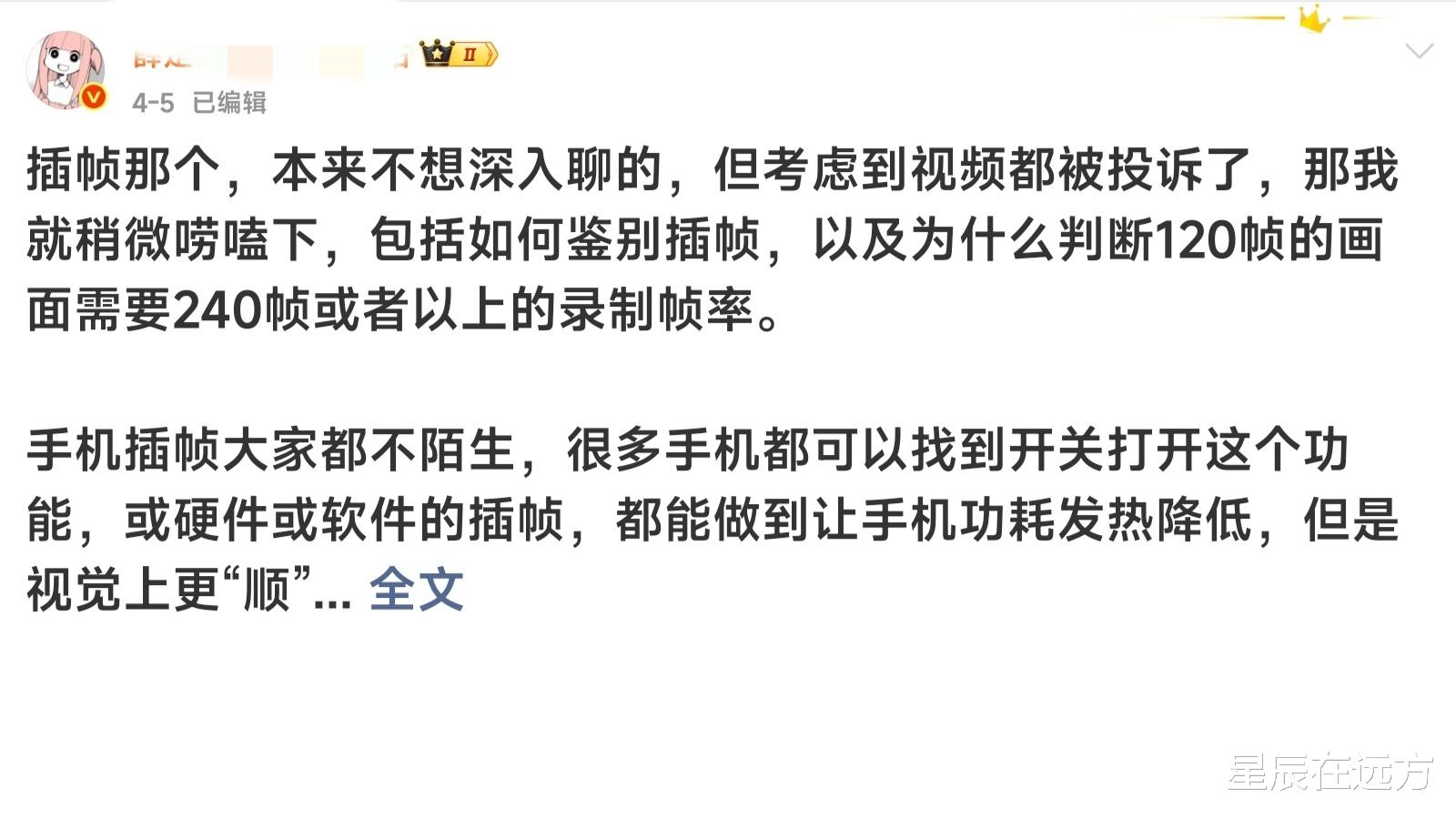 可这几天,我看见好些个数码博主都在说这款手机的游戏帧率,因为有个大博主,用240帧高速相机一帧一帧分析后发现,畅享90ProMax这款手机的120帧,其实是插帧技术搞出来的,真实清楚的帧率大概就60帧左右,所以这几天在数码圈确实引起了不少争议,毕竟这么大的企业不该这么做。