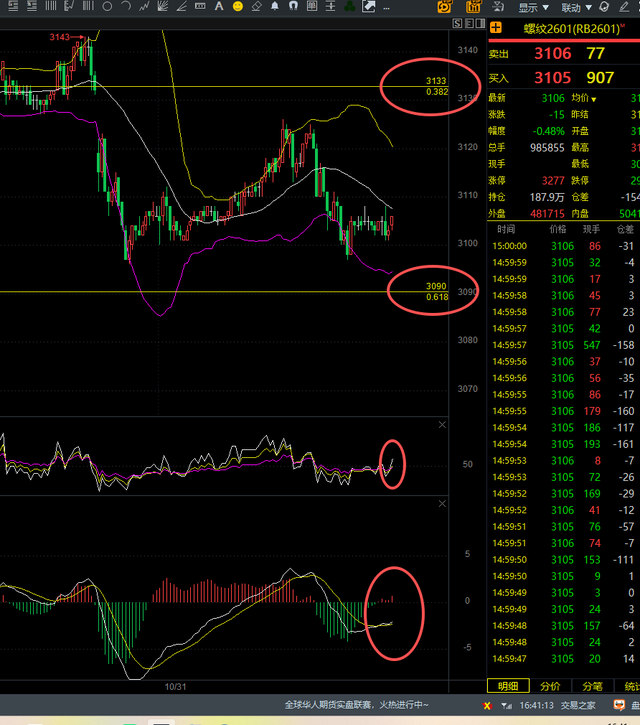 螺纹钢2601合约:基本面:房地产需求仍显疲软,1-9月房地产开发投资累计同比降幅扩大,但基建端表现亮眼,专项债10月发行破万亿带动基建用钢环比增10%,需求呈现“结构性分化”特征,晚间需留意唐山限产政策是否有延期消息、焦炭提涨是否落地,以及房地产相关利好政策。技术面:螺纹钢短期维持“震荡偏强”格局,螺纹钢核心交易逻辑为“依托3000元支撑看反弹,警惕突破失效后的回调”,无论持仓与否,均需以“关键价位突破+资金确认”为操作依据,优先控制风险,再追求盈利。操作建议:螺纹短线3100短线尝试性多单第一目标3130,底部支撑3090