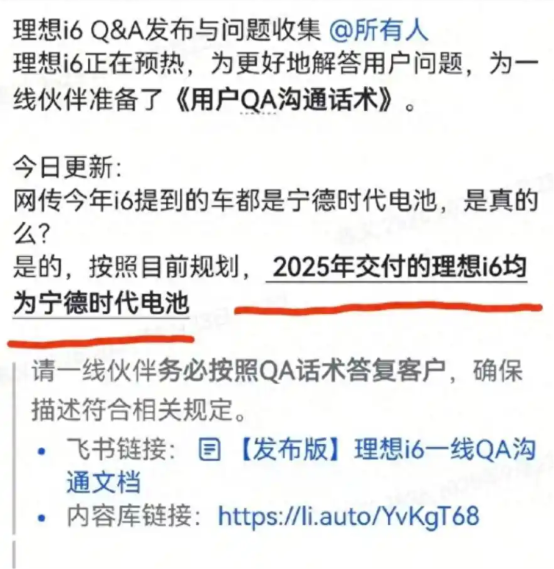 那么是不是理想希望车主跟他一起度过难关?因此,一些理想i6准车主收到的“电池选择意向调研”就颇值得玩味。理想曾在官方平台回复网友称,“2025年交付的车型全系用宁德时代电池”,但现在却让i6准车主在宁德时代和欣旺达之间做选择。准车主如果改选欣旺达,不仅能获得价值3999元的2年或4万公里延保权益,甚至还能更早提车。