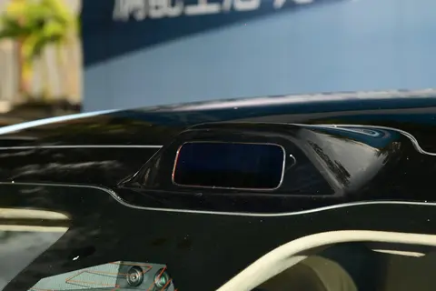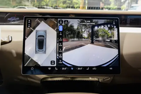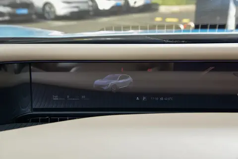 外观上,实车比图片更显大气,晴蓝配色在阳光下光泽细腻,150微米8层工艺的车漆具备日光自修复细微划痕特性——试驾时蹭到路边树枝,两天后划痕便明显变淡,对不爱频繁洗车的车主十分友好。前脸F型曲率大灯由280颗LED灯珠组成,白天低调内敛,夜间解锁时的动态迎宾效果仪式感充足;发光LOGO与主动进气格栅默契配合,低速闭格栅优化风阻,高速自动开启散热,美观与实用兼具。车身侧面采用圆润圆角设计,搭配0.61的轴长比、隐藏式门把手和20英寸多辐轮圈,线条利落不臃肿,风阻表现出色;电子外后视镜显示屏清晰度足够,雨天无视野模糊,半天就能适应。车尾星轨式流光贯穿尾灯刹车时醒目,提升安全性,扁平化LOGO与隐藏式雨刷则让车尾简洁大气,符合大众审美。