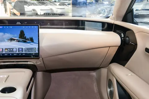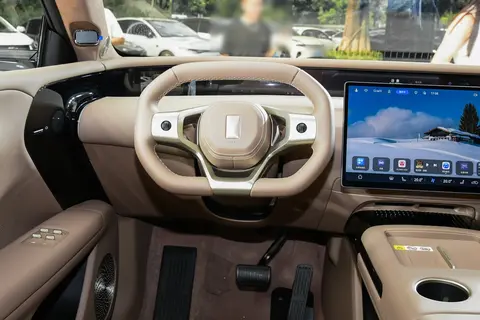 内饰质感与配置也值得称赞,岩棕配色温暖雅致,NAPPA真皮座椅搭配金色撞色缝线,触感细腻柔软且透气性好。前排座椅具备12向电动调节、4向电动腿托、4向腰部局部调节功能,长时间乘坐不易感到疲惫,加热、通风、按摩功能均有三档可调,实用性拉满。中控区域采用35.4英寸全景远端屏与15.6英寸悬浮中控屏组合,视觉冲击力强,鸿蒙座舱系统界面简洁、操作丝滑,首次使用也能快速上手。四音区语音交互精准高效,前排下达指令与后排调节需求可同时响应;超级桌面功能让手机APP直接流转至车机,开车时无需低头看手机,既方便又安全。此外,静音电吸门、16扬声器英国之宝音响等配置,进一步提升了车内的豪华感与舒适性,细节处尽显用心。