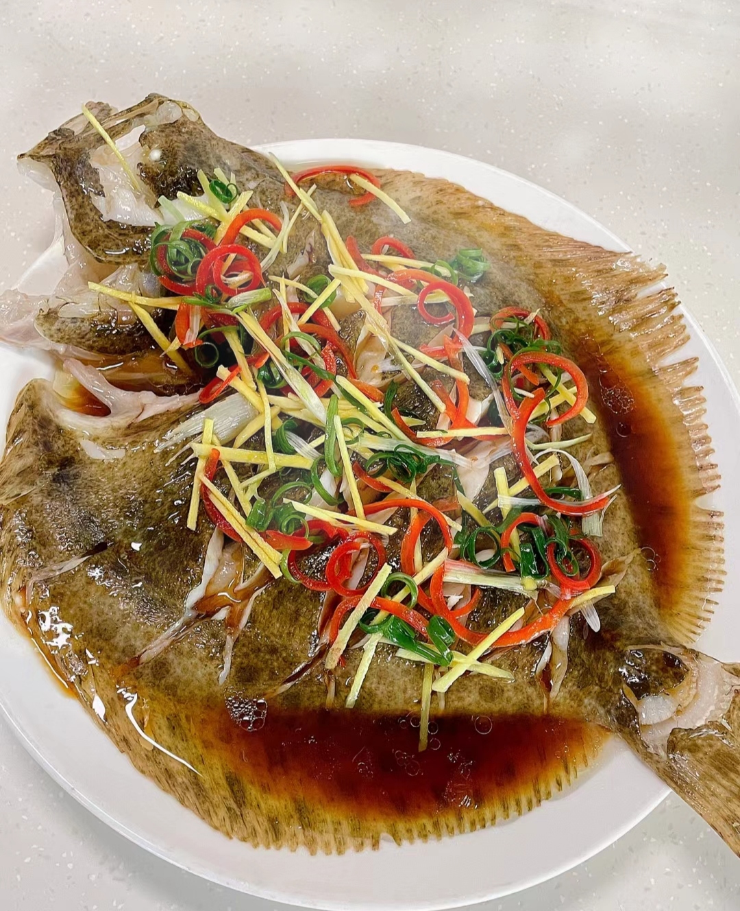 此刻,一道色香味俱全的清蒸多宝鱼便大功告成了。鱼肉细腻滑嫩,入口即化,辅以红椒、姜丝的清新点缀,色香味形俱佳,令人食欲大增。