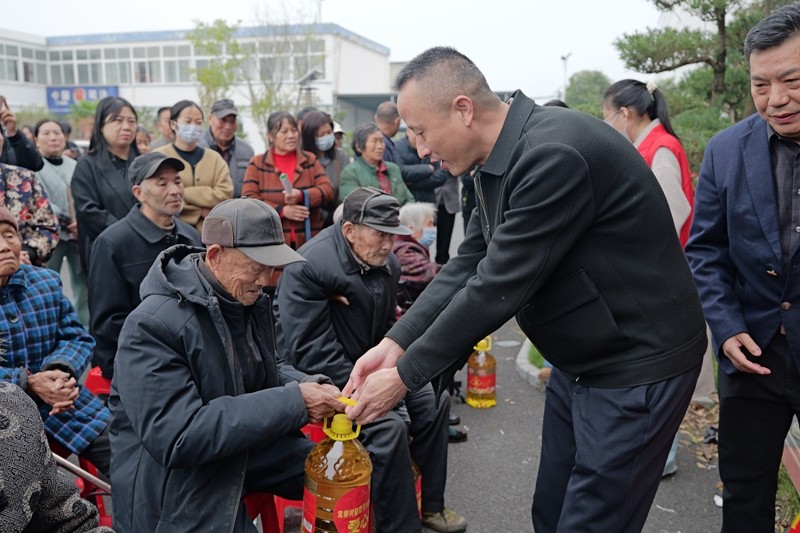 李合成作为爱心企业代表发言。他表示:“敬老不仅是物质上的支持,更在于精神上的关怀;不仅是节日的问候,更在于日常的陪伴。”作为一名从双柳树镇走出去的企业家,他始终心系故土、情牵家乡。此次,他专门为全镇90周岁以上老人购置了大米、面粉、食用油、猪肉等慰问品,总价值3万元,以实实在在的行动诠释敬老爱老的优良传统。