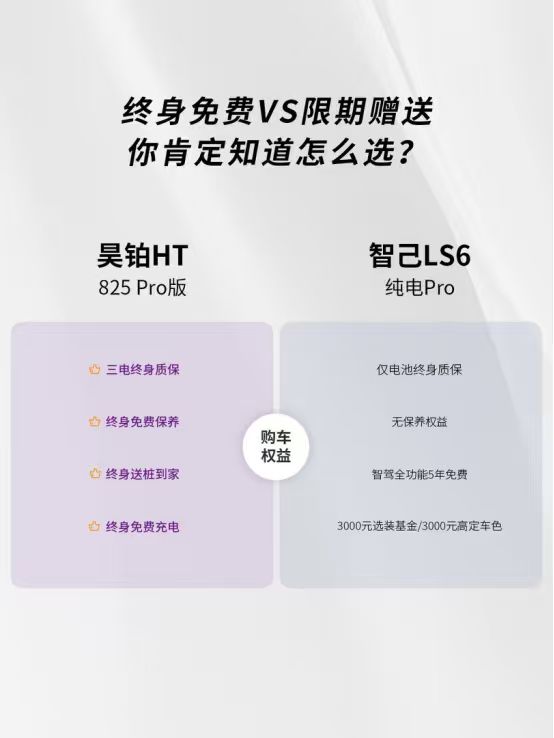 虽然昊铂HT 825 Pro的终端价(19.99万)比智己LS6 Pro(19.79万)略高2000元,但它在续航、舒适配置和终身权益这三个维度上,带来的附加价值远超这个差价。价格贵一点,但价值多很多,这才是真正的高“品价比”之选。