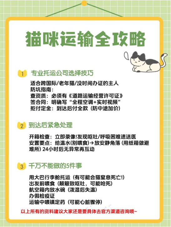 选承运方时,一定要查资质(比如航司许可证、运输公司营运证),毛孩子安全最重要;