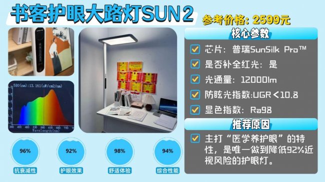 推荐款:书客护眼大路灯SUN2——为儿童和青少年提供专业级、舒适护眼的健康照明体验,成为护眼台灯领域的新标杆。