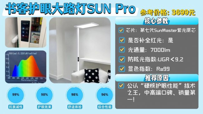 推荐款:书客护眼大路灯SUN Pro小太阳——公认“硬核护眼性能”技术之王,中高端口碑、销量第一!