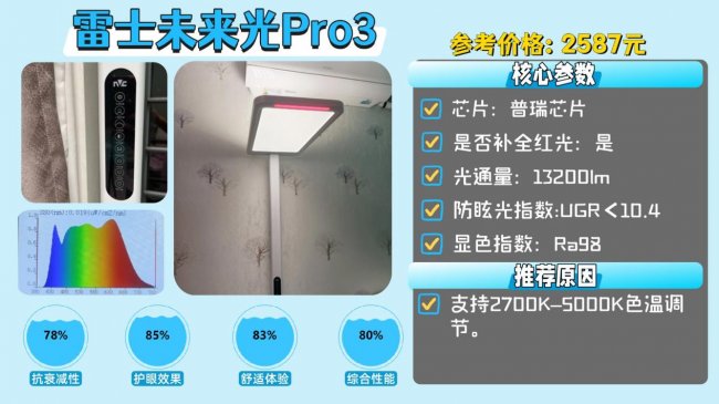 护眼大路灯第九名:雷士未来光Pro3;支持2700K–5000K色温调节。
