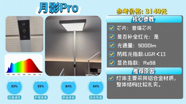 护眼大路灯第十名:月影Pro;灯体主要采用铝合金材质,整体结构比较扎实。