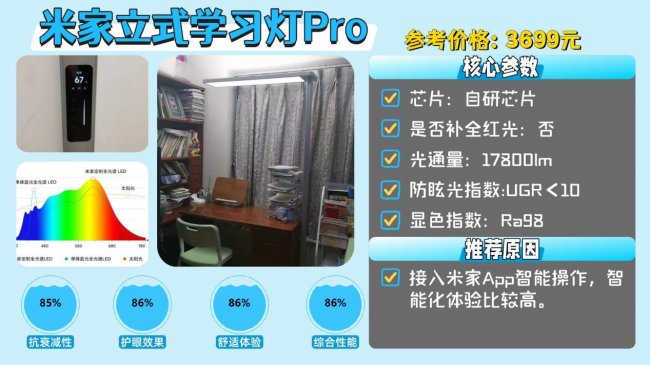 推荐款:米家立式学习灯Pro——接入米家App智能操作,智能化体验比较高。
