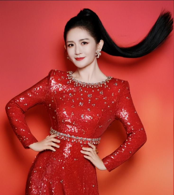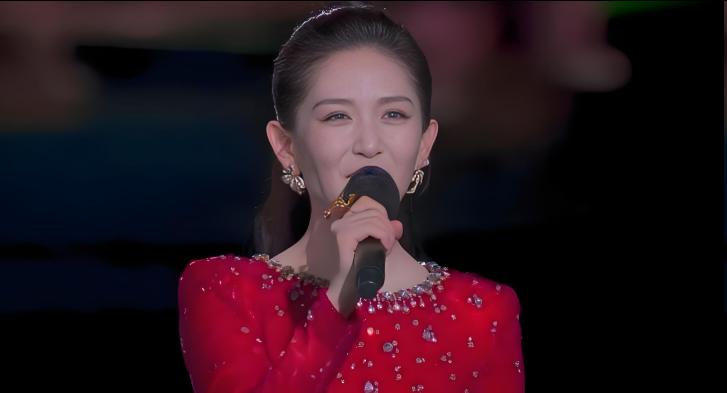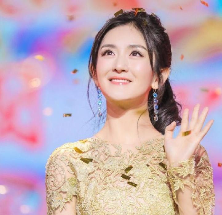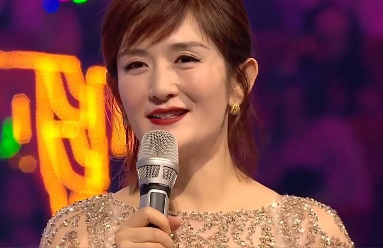 站在央视舞台上的她,一改往日的形象,变得端庄大气。