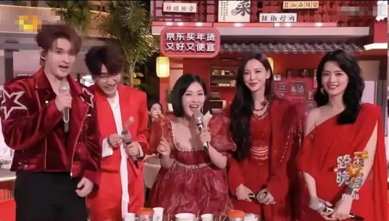 还有一次,谢娜和一众主持人在主持新年的跨年晚会。