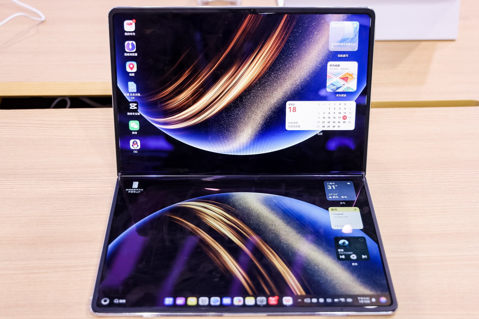 另一焦点展品MateBook Fold,则打破了笔记本固有的物理形态边界。全球首款18英寸可折叠Windows PC不仅在形态上形成笔记本电脑与平板的自然切换,更借助HarmonyOS打通了手机、平板、显示器之间的分布式能力。