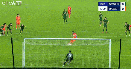 第12分钟,瓦科突入禁区随后被放倒,主裁判判罚点球,不过瓦科亲自主罚的点球,被浙江门将赵博神奇扑出,泰山队错失进球最好机会。