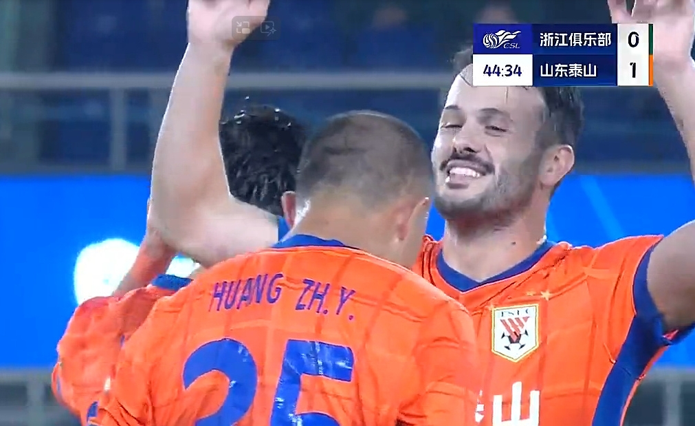 上半场第44分钟,黄政宇插上迎球怒射,皮球弹地后入网,泰山队1-0领先。