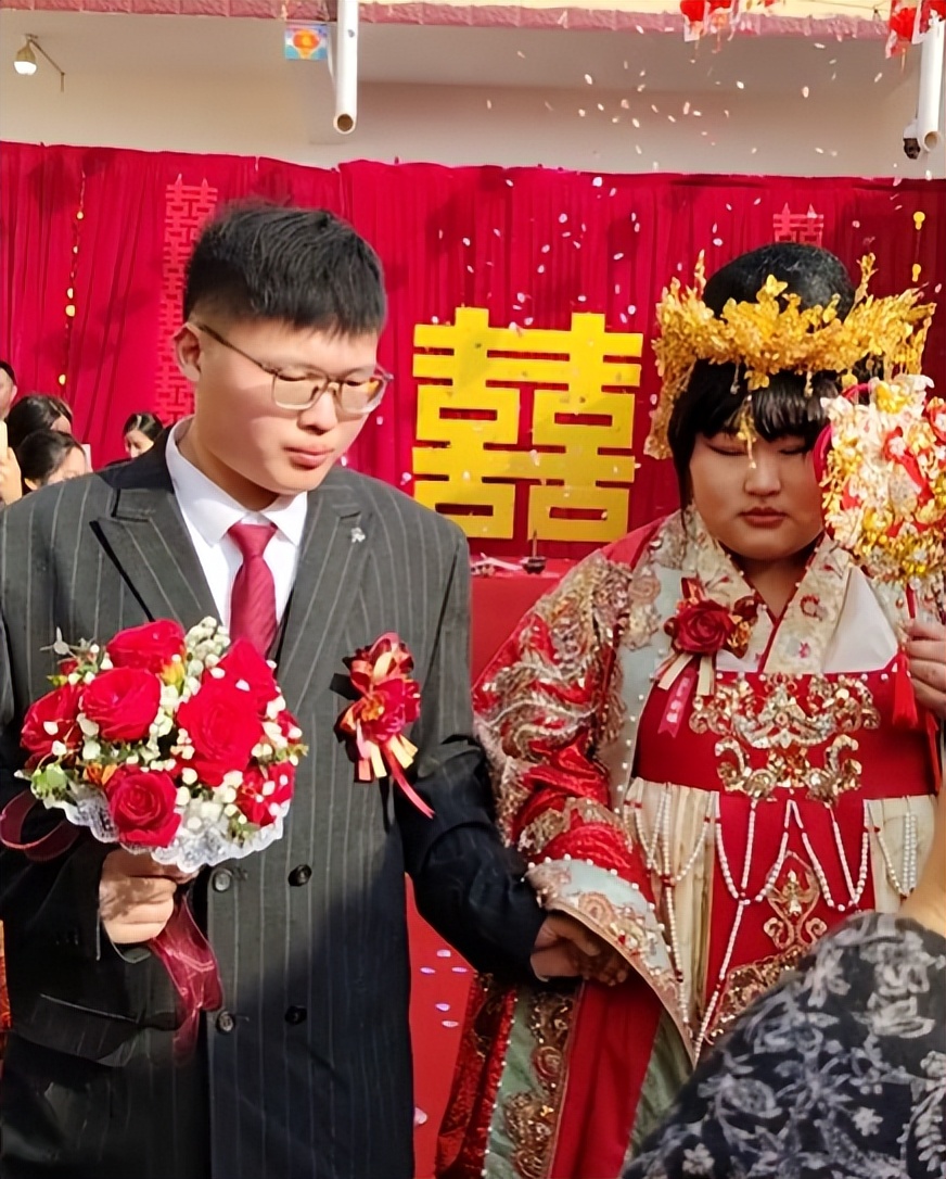 喜宴就是村里最常见的流水席,菜都是本地家常菜,没有奢华摆盘,没有高价烟酒,整场婚礼全按本地最普通的规矩走,没有半点出格的排场。