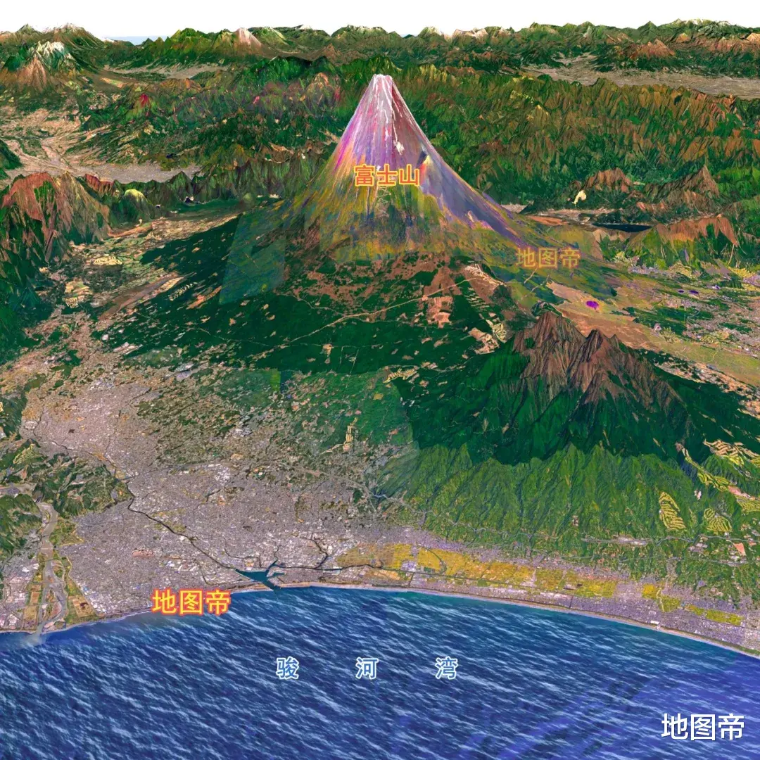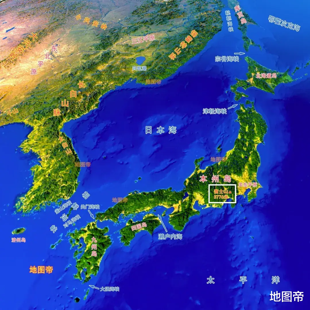 本州岛多山,中部为飞驒[tuó]山脉,北部为奥羽山脉,西南为中国山脉,南部为纪伊山脉,最高峰为富士山,是活火山,海拔3776米,也是日本最高峰。