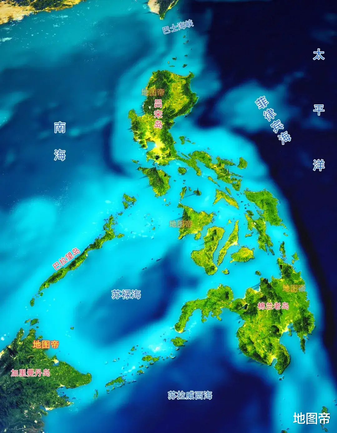 菲律宾有7000多个岛屿,北有吕宋岛,南有棉兰老岛,海域非常大,领土显得分崩离析。