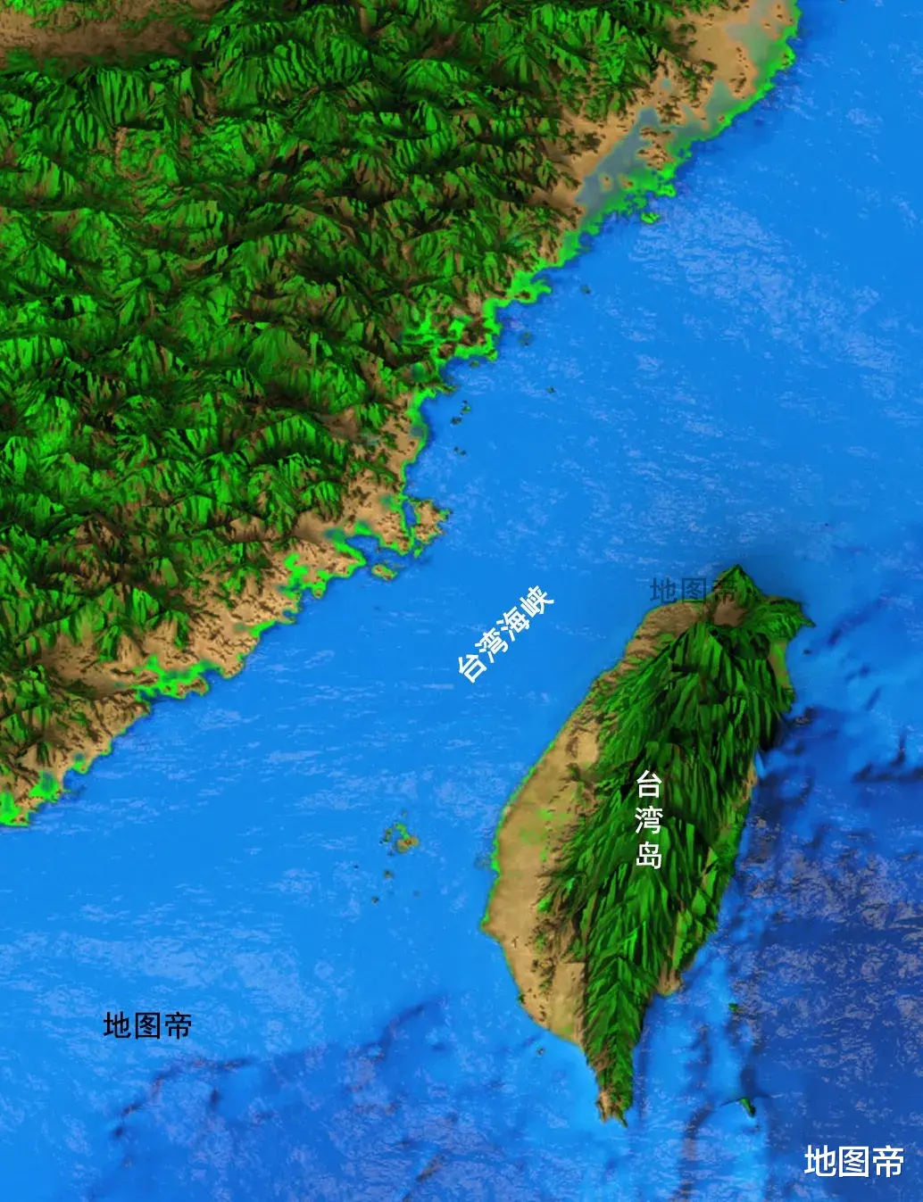 台湾海峡位于东亚大陆与我国台湾岛之间,北界为福建海坛岛与台湾岛北端富贵角的连线,南界为南澳岛与台湾岛南端猫鼻头的连线,南北长约370千米,东西最宽200多千米,最窄处只有130千米,面积约8万平方千米,属东海。