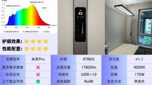护眼大路灯哪个牌子好用?米家作为智能家电领域的代表品牌,这款米家Pro主打智能联动,内置高精度光线传感器能够自动感应环境亮度,实现入座感应,并且操作方式非常多样,除了灯杆触控外,还支持无线遥控器、米家App以及小爱同学语音控制,日常使用更方便,核心光源部分,米家搭载了666颗四芯全光谱LED灯珠,通过1050mm长条形发光面设计,照明范围广、光线明亮,总光通量可达约17800lm。不过上下光通量的差异比较明显,整体更适合注重智能操控体验、喜欢科技感照明的伙伴。