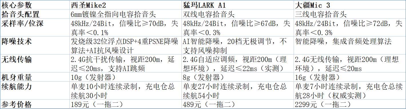 西圣Mike2、猛玛LARK A1、大疆Mic 3怎么样?好用吗?答案不在参数,而在你的创作需求与预算——要高性价比与稳定性能,还是潮流设计与生态协同?你的需求,才是最终的裁判。