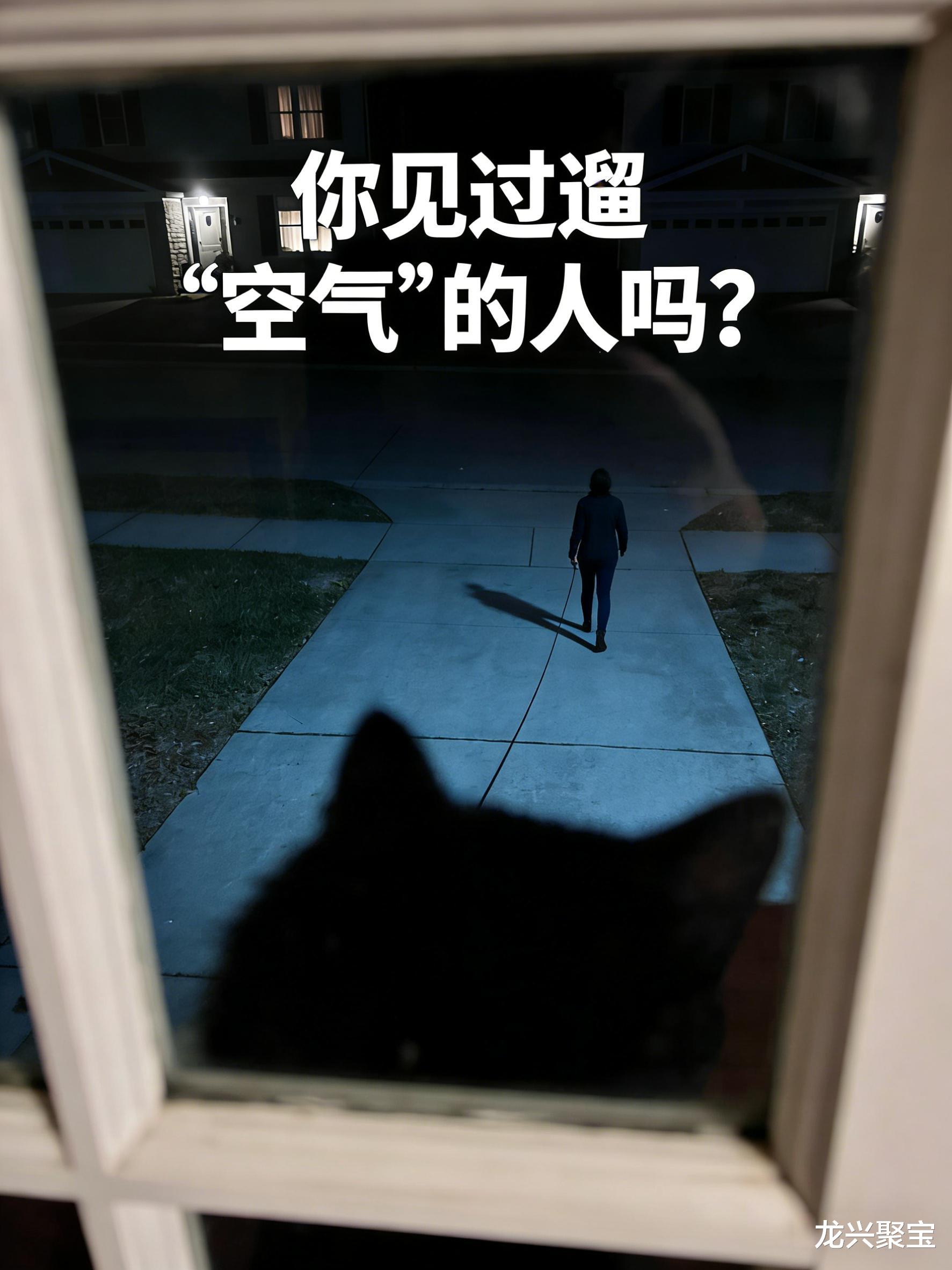 他就这么牵着“空气”,慢慢地走,步伐平稳。有时会停下,低头对着空无一物的身侧,极其温柔地嘀咕几句,仿佛那里真有一只大型犬在嗅闻花草。