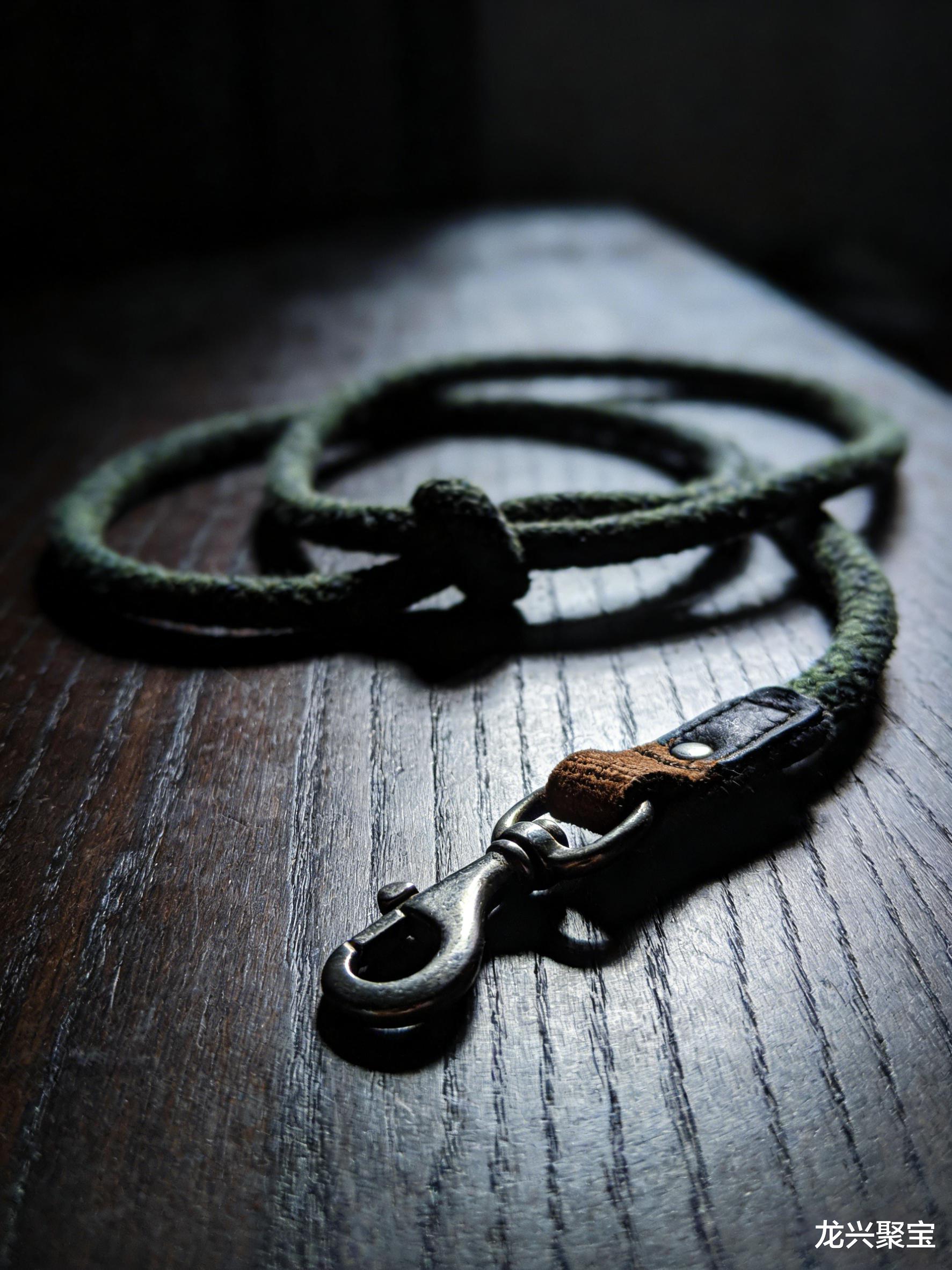 他手里总牵着一根宠物用的牵引绳,是那种能伸缩的、很专业的款式。绳子拉出大概一米的长度,末端稳稳地握在他手里。但绳子的那头——空空如也。