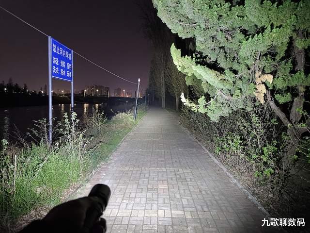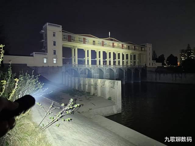 远处的路况,对岸的桥洞都能在手电强光的照射下看得一清二楚。此外,手电的散热效果也不错,长时间高档位下照射,虽有发热,但并不会感到明显烫手。