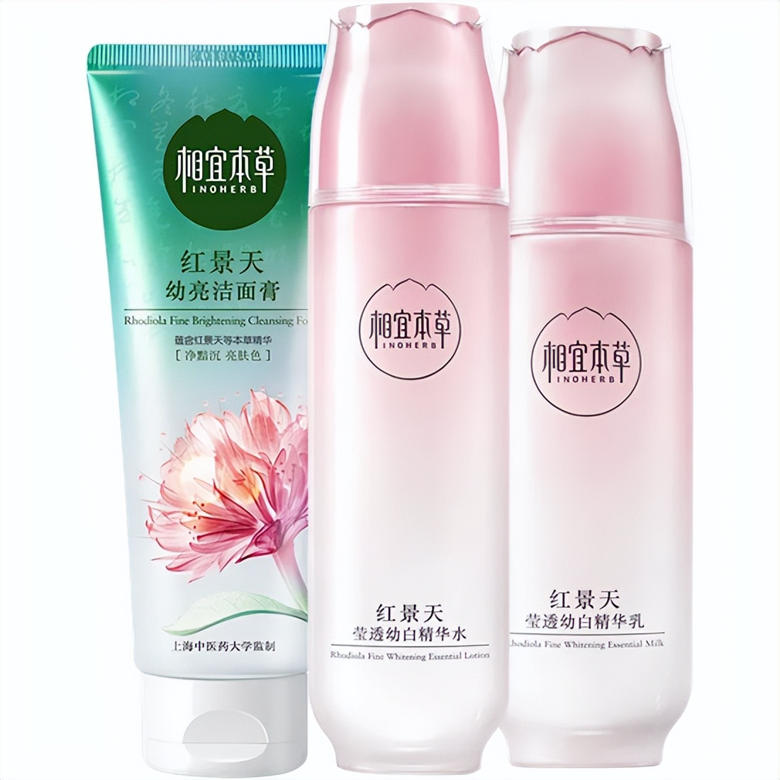 3 相宜本草红景天美白护肤品套装相宜本草红景天美白护肤品套装,含有红景天、白芍药、积雪草等植物成分,可有效抑制黑色素生成、沉积,养护肌底,增强肌肤弹性和抗氧化能力,焕发肌肤水嫩亮白光泽。