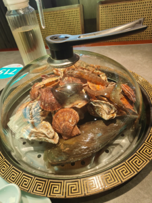 威海名店、山东必吃的本土海鲜标杆!食材现点现捞现做,招牌海鲜蒸汽锅蒸汽牢牢锁鲜,海肠捞饭酱香入味,海肠脆脆的很好吃,巧克力渔家属于是来威海必打卡,闭眼冲就完事啦!
