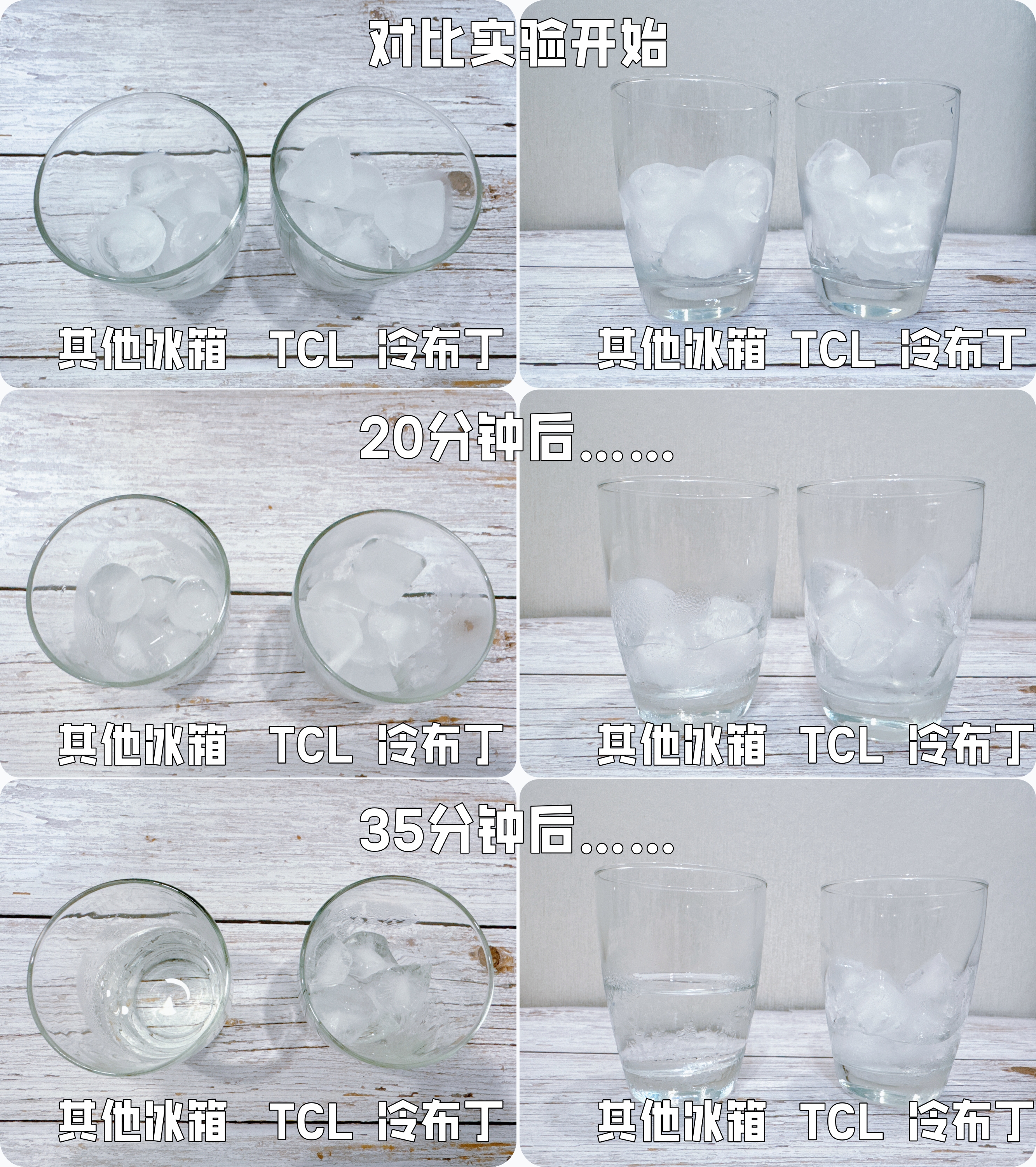 我用TCL 冷布丁制冰冰箱和其他冰箱制作的冰块在常温水条件下(实测室温23℃)自然融化的速率进行对比,前者完全融化足足要70分钟,后者20分钟分钟就“蔫了”,约莫35分钟就全部化作水,-40℃慢融冰的融化速度足够慢,对饮品的冰镇效果自然持久不减。