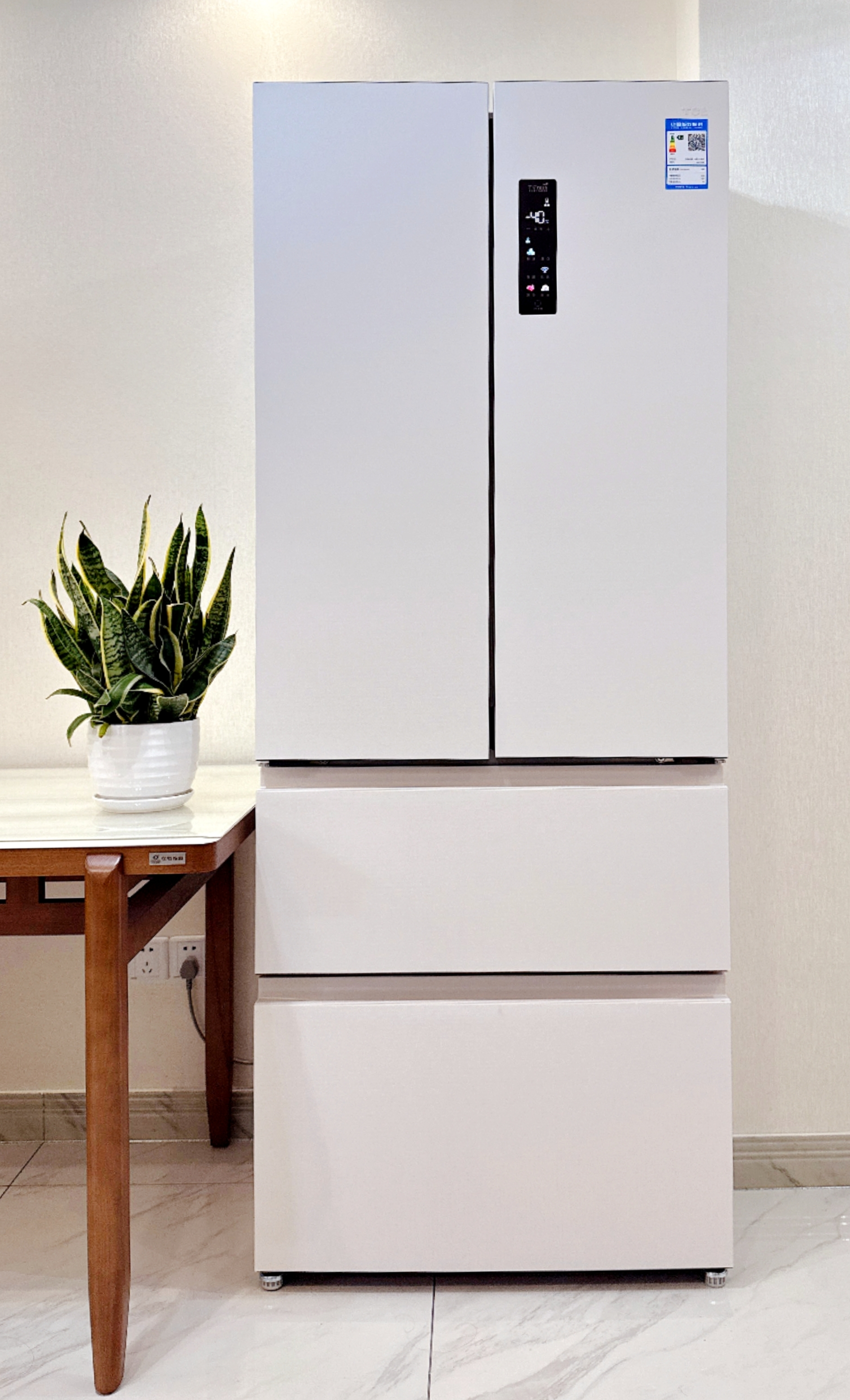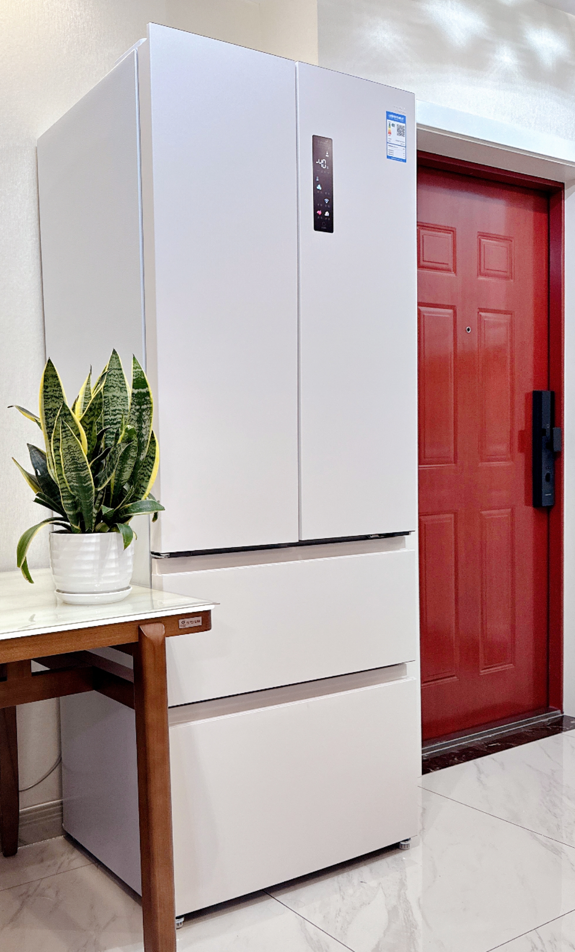 我一直觉得TCL 冷布丁制冰冰箱是年轻人的首选,还在于它给我的惊鸿一瞥。75.3cm黄金宽度、58cm超薄机身,精巧十足,能齐平时下正兴的标准橱柜尺寸(60cm深度),严丝合缝平嵌,和谐零凸出,是中小户型家中打造现代厨房的完美拼图。用时下年轻人的流行话说:“瞧这冰箱的魔鬼身材,嵌入橱柜不留一丝缝隙,简直治愈了强迫症!”