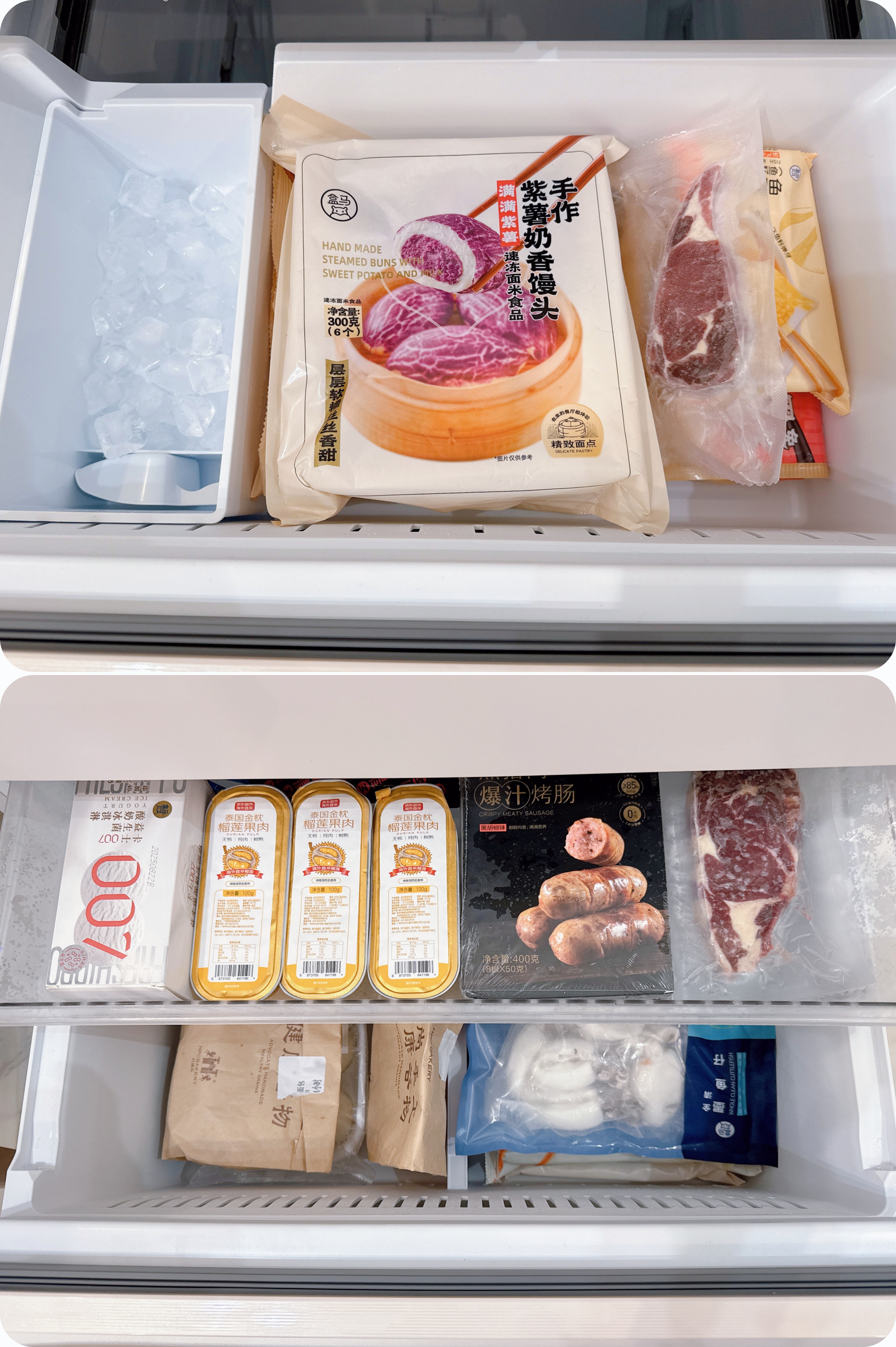 它的法式双层全宽大抽屉是豪放派“大胃王”的好帮手,双十一囤货的羊腿、大黄鱼等大尺寸的食材整存整取,毫不捉襟见肘,无需费力切断、化整为零。