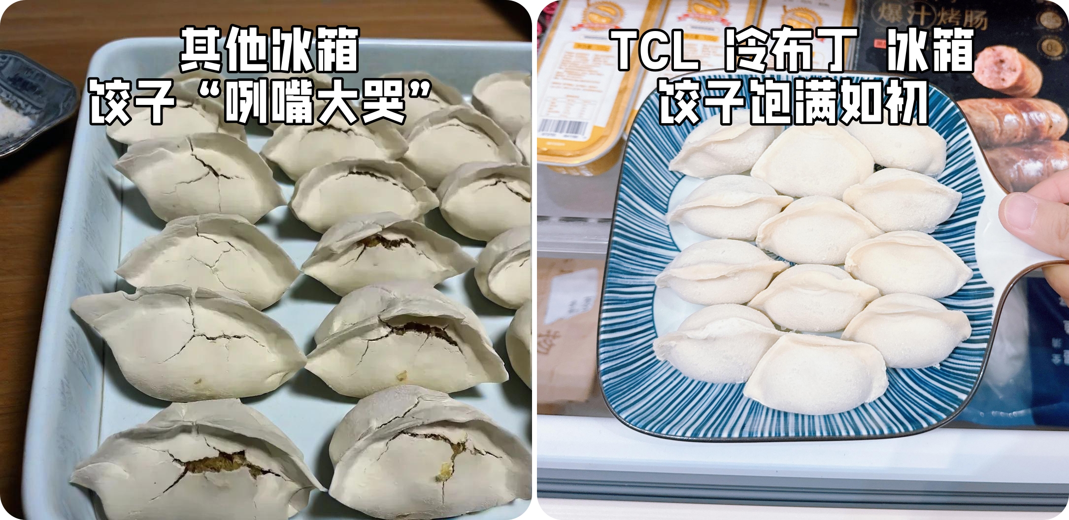 正值学龄的孩子爱吃水饺面点,我们苦于平时上班没空,经常到饺子店一次采买几斤水饺。眼瞅着店员手把手包好水饺,买回家放进冰箱冷冻室,饺子形态迅速定格。冷冻状态下,饺皮饱满圆润,没有其他冰箱冻存时常见的外皮干裂和瘪塌变形的“破相”。想吃的时候,沸水下锅,一如刚包好的新鲜水饺,皮质透明、弹性十足。