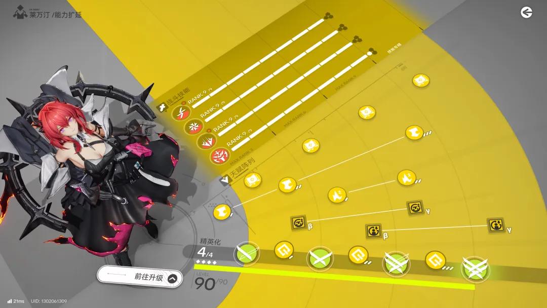 角色技能成长页面同样有趣。游戏实际上并没有采用太直接的工业元素,却用一个带弧度的大色块,做出传送带的剪影。