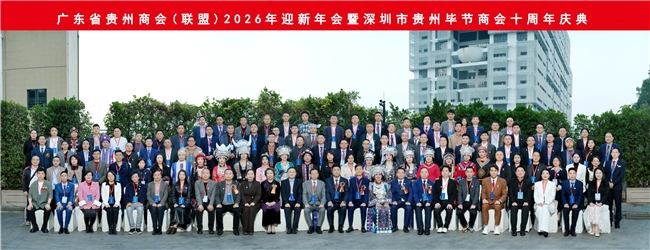 近日,广东省贵州商会(联盟)2026迎新年会暨深圳市毕节商会成立十周年庆典在深圳隆重举办。近千名在粤黔籍企业家、家乡领导及各界嘉宾齐聚一堂,以“南粤贵商,一起闯!”为主题,共叙乡情、共话发展、共迎新春。