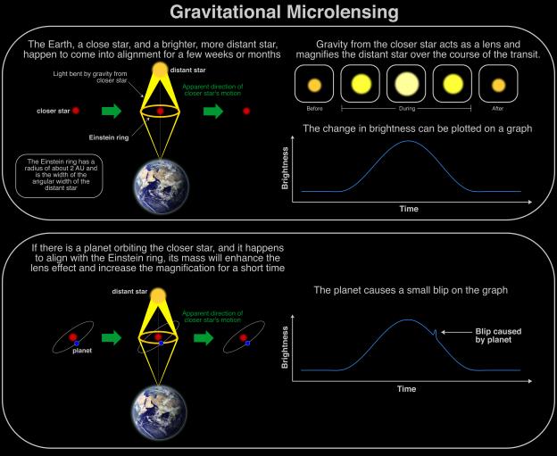 微引力透镜法是一种相对较新的探测行星的方法,它利用了引力的弯曲效应。当一个恒星在另一个恒星和地球之间时,其引力可以弯曲来自背后恒星的光线。如果行星在视线上方通过这个弯曲的光线,它会放大背景恒星的亮度,从而可以被探测到。微引力透镜法的优点是可以探测到较远的行星,但其缺点是需要精密的天文学观测,因此发现行星的成功率较低。