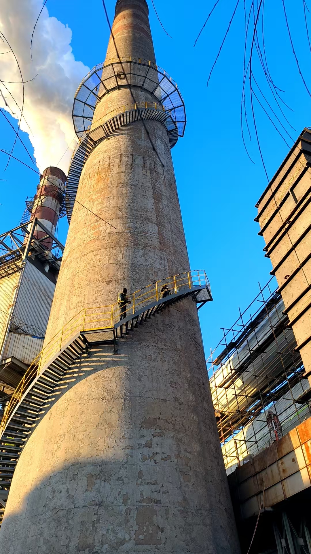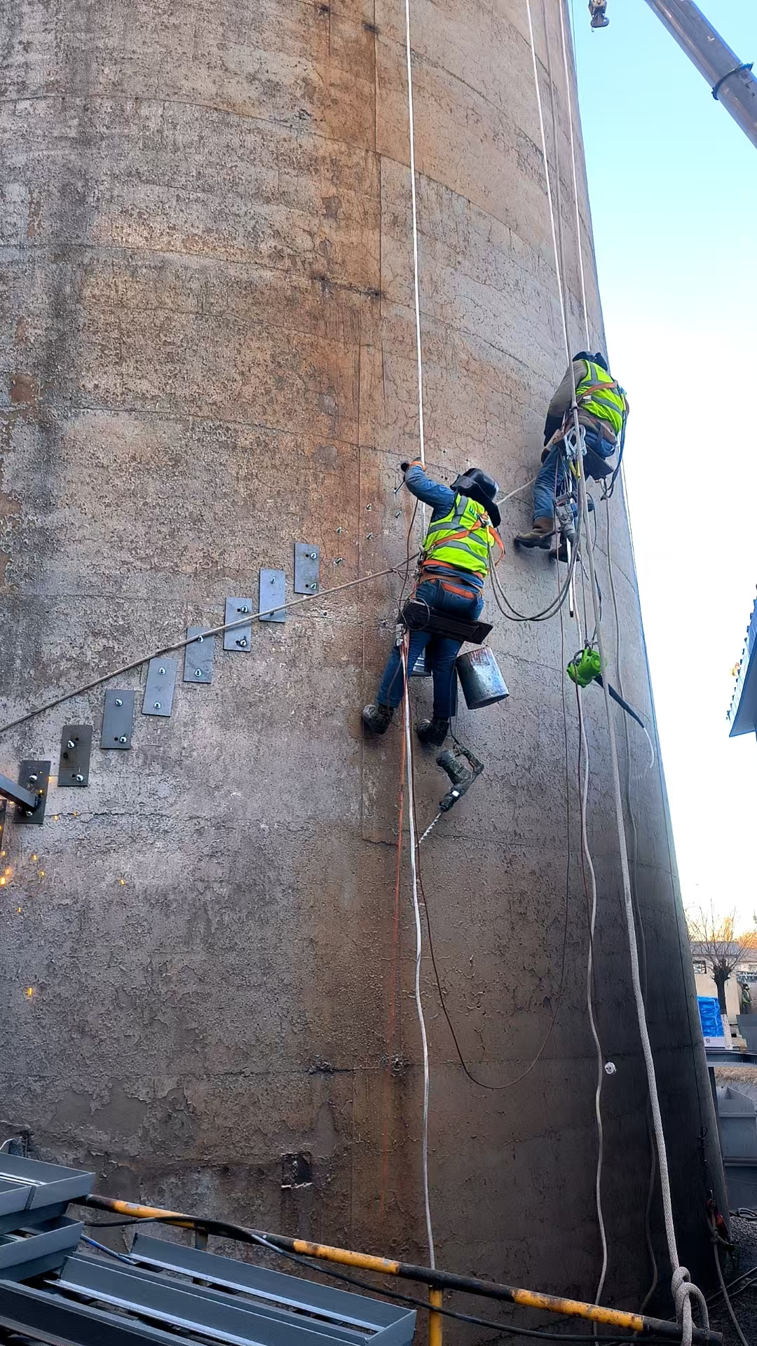 4. 高空吊装安装:分段吊装钢梯,与预埋件、锚栓连接;校正垂直度、水平度;焊接牢固,焊缝饱满,无夹渣、气孔;焊接部位补做防腐