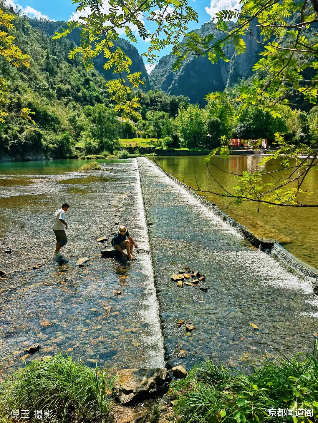 前方气势恢宏,飞檐翘角的阁楼吸引自己加快步伐,走近一看是“水心塔”。别看这座塔名带“水”,实则并非建于水上,塔内雕刻着叶适的《看柑》《锄荒》,薛季宣的《江村闻笛》,还有陈傅良的《送雪庵还山》名人诗词,引得游客驻足揣摩。水心塔下方200多米处,175块石碇错落有致地屹立在江面上,连接起两岸,旁边还架设有石板桥。为保障游览秩序与安全,这里借鉴陆路交通模式设置为单向通行。景区工作人员站立在水中,手持相机招呼游客摆出造型,记录下美好瞬间。满意的照片付费便可带走,不喜欢也无需勉强。据传,走石碇有着特殊寓意,在石碇上行走,一步一个脚印,象征着脚踏实地、步步高升。从前,楠溪江一带的人们为过水方便,在低水位处以步伐为间距,用方形石桩砌筑通道,每个石桩大半部掩埋于水下,露出水面仅一二尺,这便是“石碇”的来历。