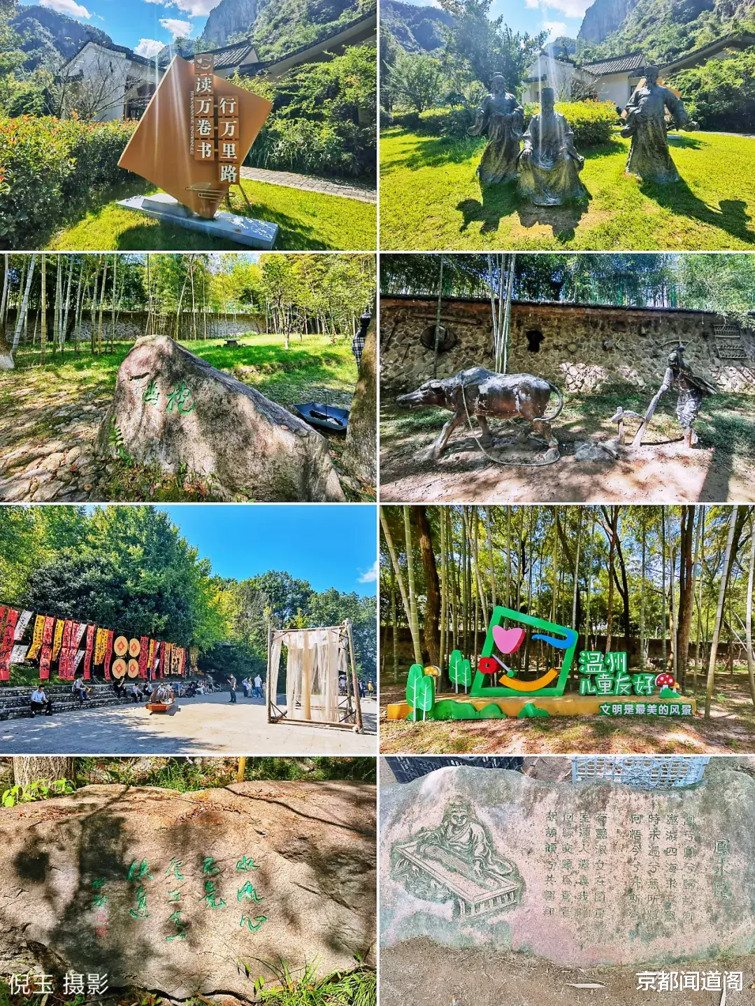 游览主通道沿横穿景区的楠溪江修建,身旁是层次分明的茂密植被。书籍形状的导游提示牌随处可见,清晰标注着沿途景点,方便游客自主选择路线。“耕读文化”展示立牌引人驻足,“耕为本务,读可荣身”的理念在此落地生根。景区内设立的丰富的儿童娱乐项目和区域,鲜明凸显了“温州儿童友好城市”的定位。一旁栩栩如生的农耕雕塑,搭配“温州儿童友好、文明是最美风景”的造型,构成了一道别致的风景线。沿途还不时就地取材,创意独特的石刻映入眼帘,让景区更具文化韵味。